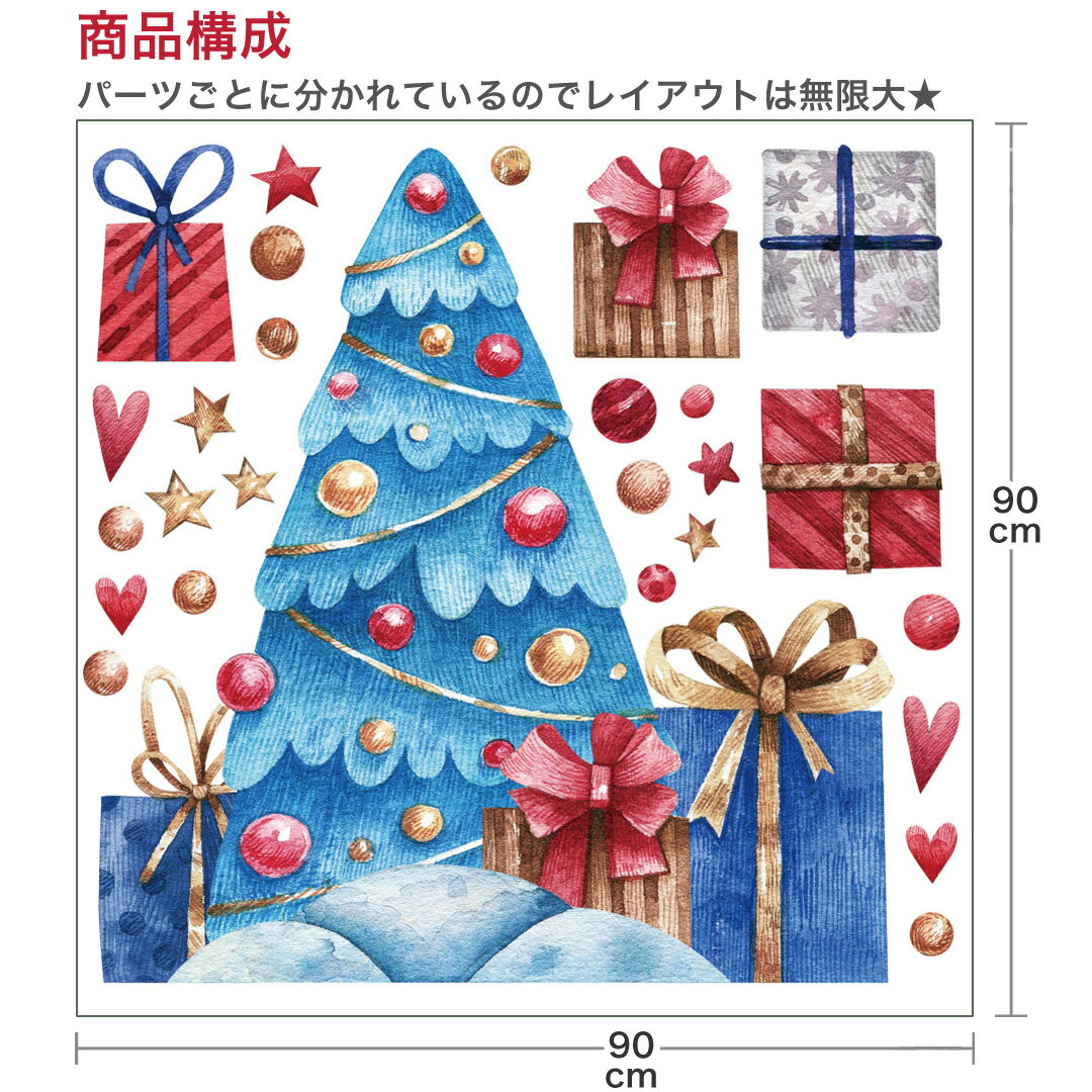 ウォールステッカー クリスマス Christmas Xmas 飾り 90×90cm Lsize シール式 装飾 オーナメント ツリー リース xmas Xmas DIY サンタ パーティー 017598 クリスマス ウォールステッカー 青 ツリー プレゼント